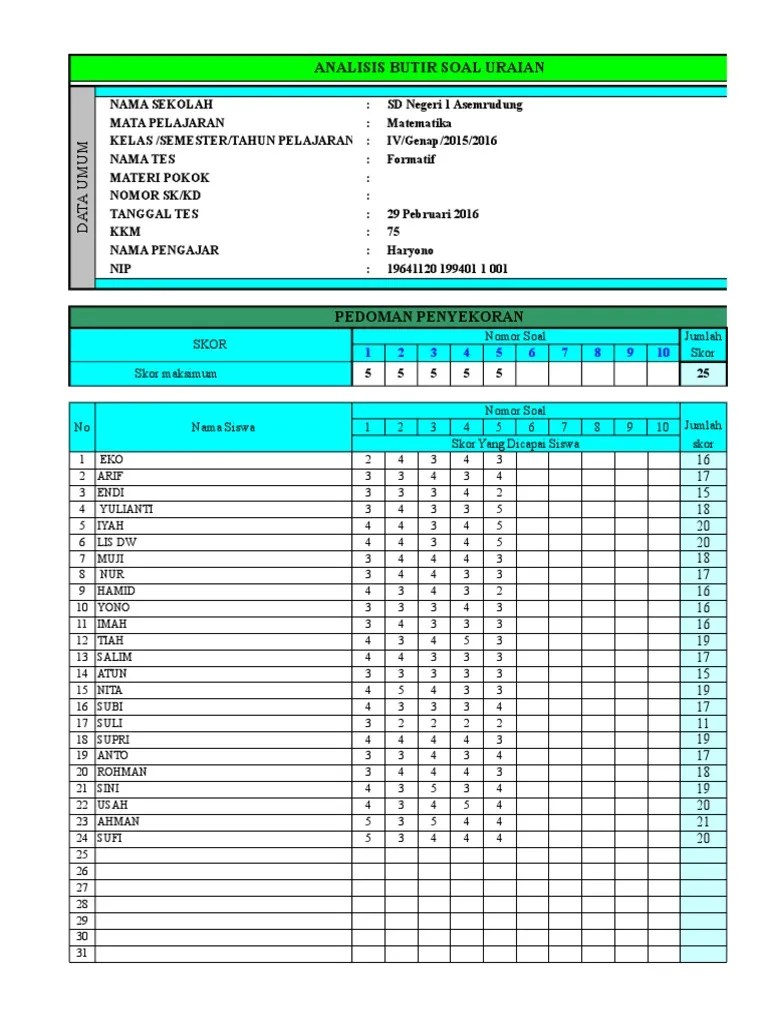 21.09.2021 · analisis butir soal uraian nama sekolah :